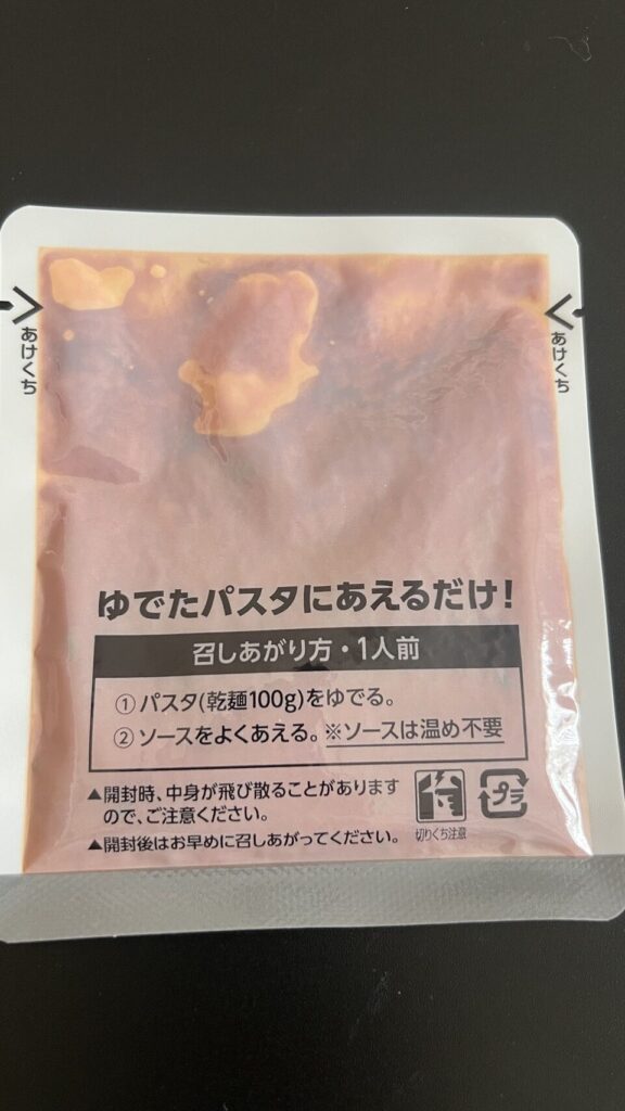 よく湯煎したりチンしてという案内のあるものもあるのですが、こちらはそのまま、名の通りパスタにあえるというのも意外でした。これはつまり凝固しておらずあえやすい滑らかなソースだということも言えるのかなと思います。