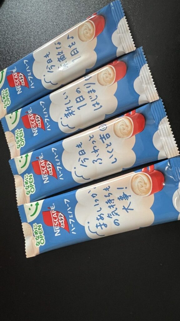 ふと気づいたのですが、このハーフ&ハーフの製品はちょこっとメッセージがスティックに書かれていて、何種類かあるようでした。優しく励ましてくれる感じが癒されますね。