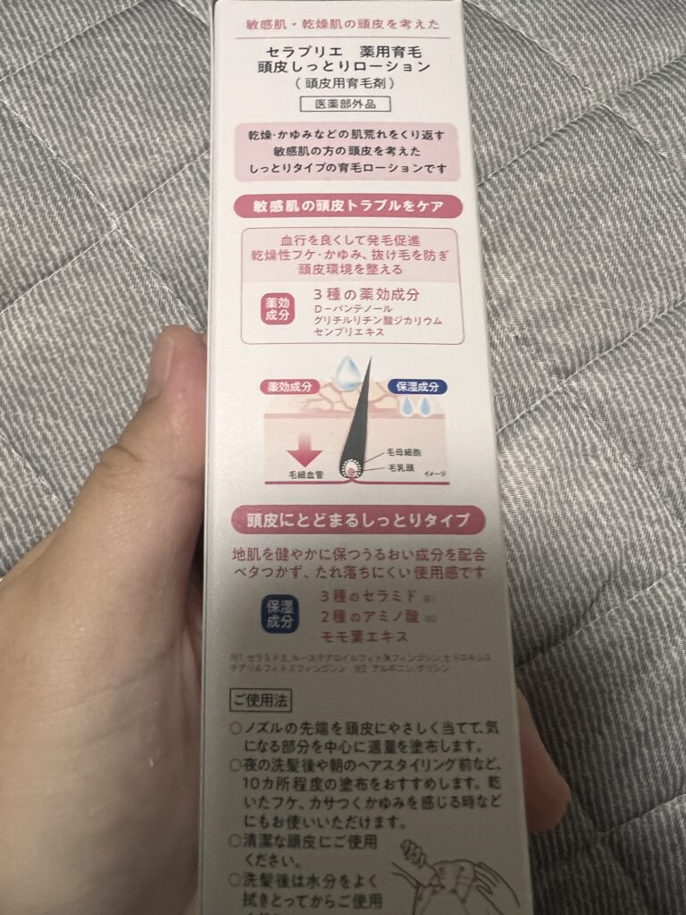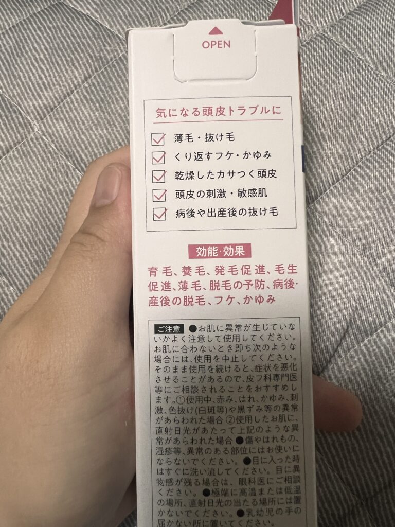 洗い上がりにとも書いてありますが、痒いと感じた時にも良いとのこと。もし気になる方は先端だけアルコールで拭いたりすればいいでしょうか。細い先端は丸みを帯びていて出量も調整しやすいですね。