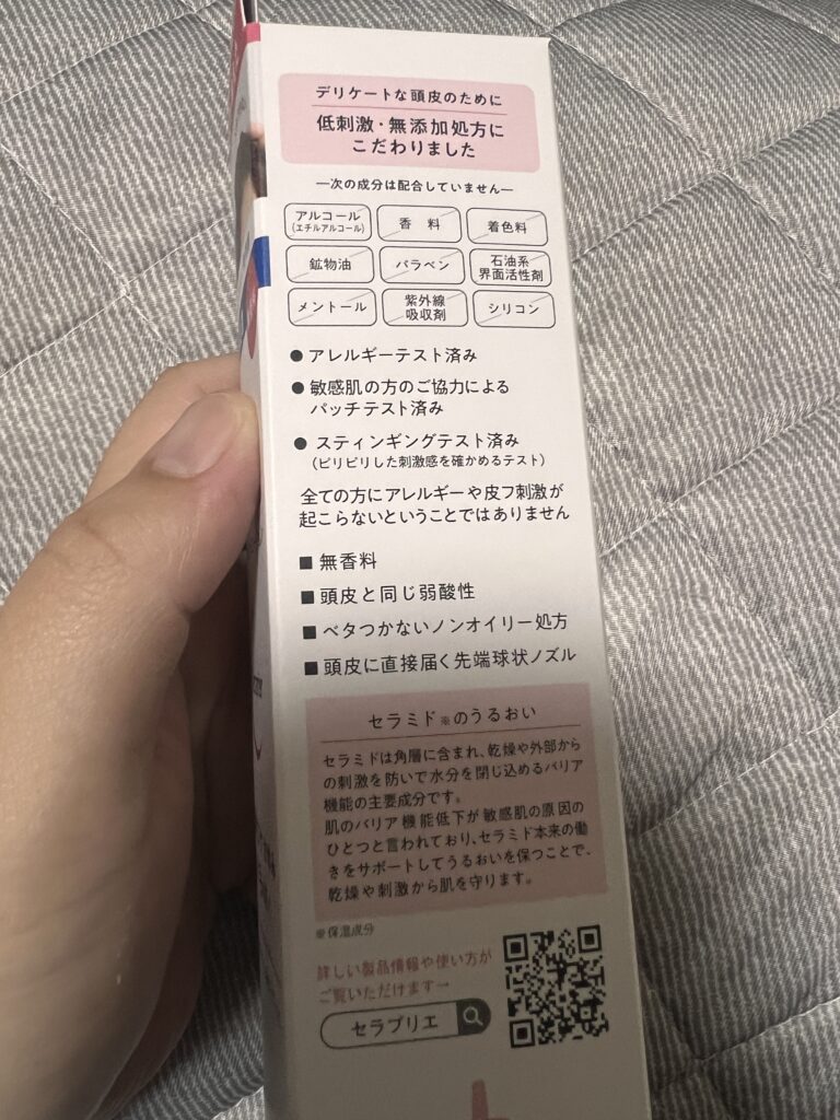 敏感肌さんのために原材料にたくさん配慮されていることが伺え、優しい成分なのだということをパッケージ説明からも感じますね。
