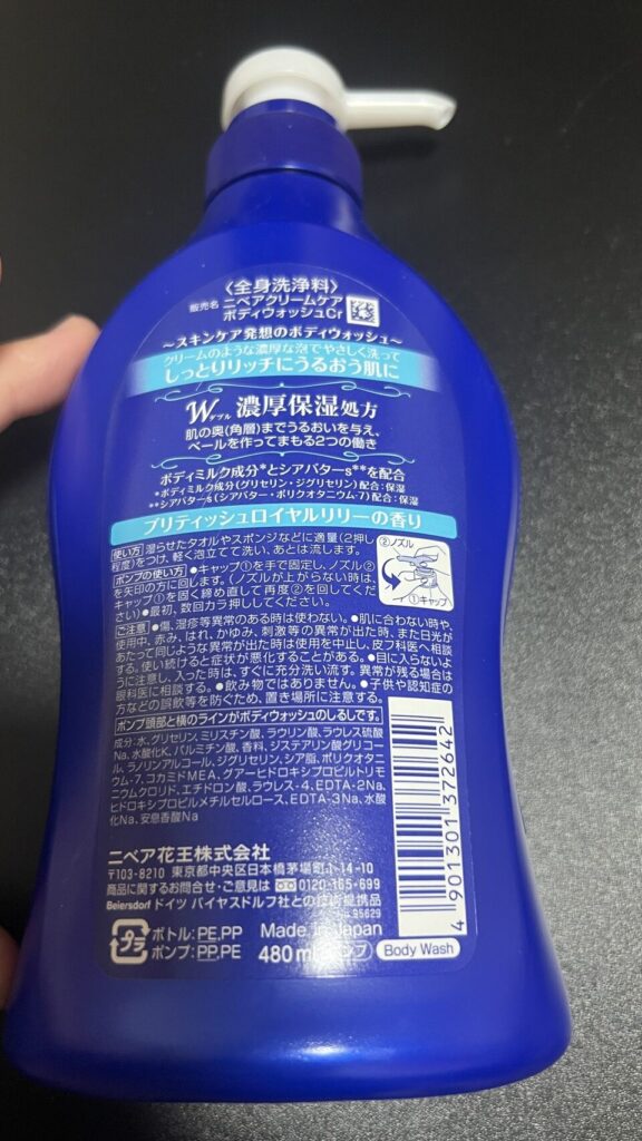 そんなしっかり肌を包んでくれるであろうNIVEAの「W濃厚保湿」を謳ったこちらのボディーソープ。